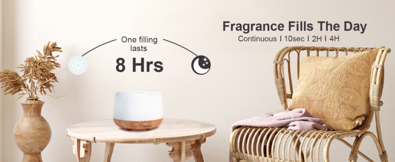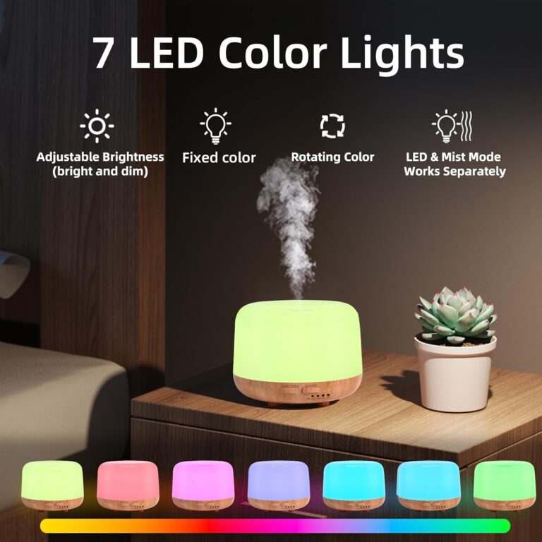 - Relaxation Atmosphere: Mini Portable diffuser with 7 different LED light colors, multiple atomization timer modes and Waterless Safety Switch .This electric diffuser large 500ml water tank can work up to 8 hours in the weak mist mode which can ensure you enjoy longer soothing aromatherapy time in your bedroom, study, living room, bathroom, or baby room.