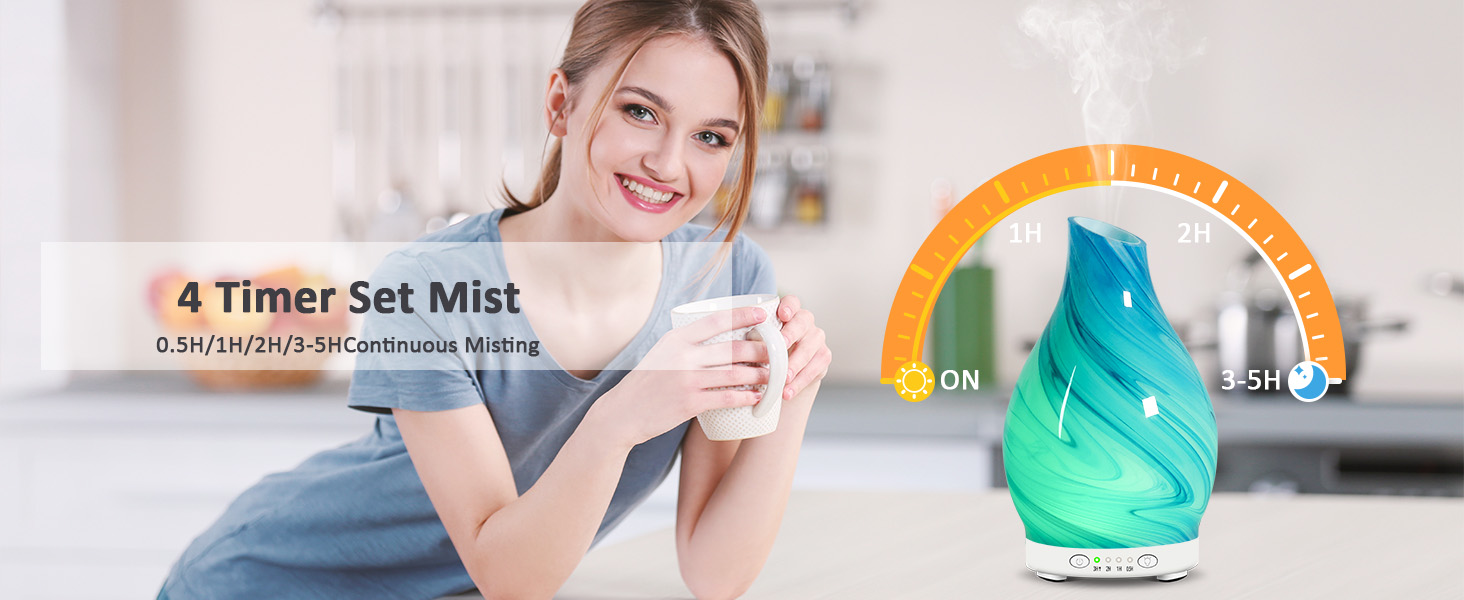 - Mutifuctional Essential Oil Diffuser: This multifunctional oil diffuser is a timed setting essential oil diffuser, cold mist humidifier, 7 color adjustable night light, home decor. It is simple and easy to use, just add a few drops of your favorite essential oils into the tank and the diffuser will release a fine mist of fragrance into the air, use our diffuser to create a fragrant atmosphere for your home.