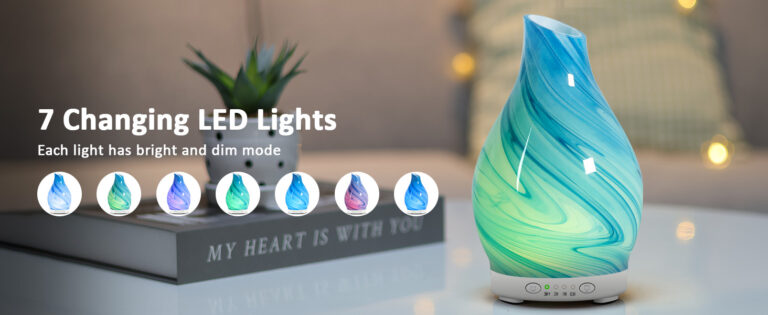 Winpro’s 120ml art glass diffuser is a 4-in-1 device (diffuser, humidifier, night light, decor). It has 7 adjustable LED colors, 4 timers, ultra-quiet operation, and waterless auto-off—safe, elegant, perfect for home/office/yoga and thoughtful gifting.