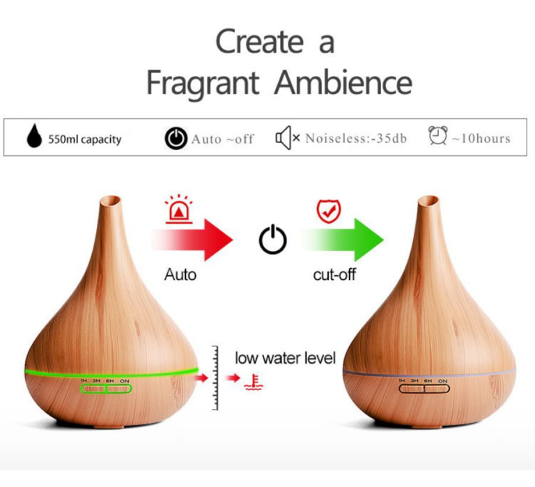 - Safe & Auto Shut-Off Protection: This humidifiers with essential oils for the bedroom will automatically shut off. You can totally free your worry about it will dry running when you are sleeping. Automatic shutdown without water.