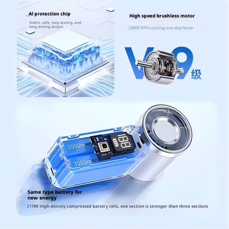 - Fast Charging Convenience: Featuring a Type C charging port, this fan supports quick charging. Enjoy extended cooling without long waits, ensuring you’re ready to beat the heat.