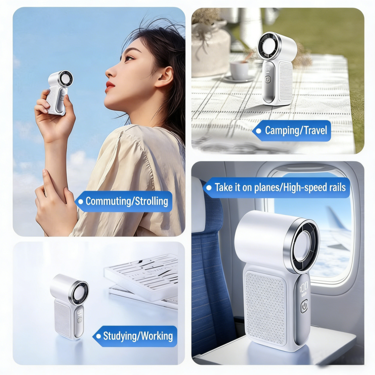 - Offices: Mini design fits any desk; 100 speed gears let you adjust wind power freely, quiet work won’t disturb focus, relieving stuffiness from long hours of office work.