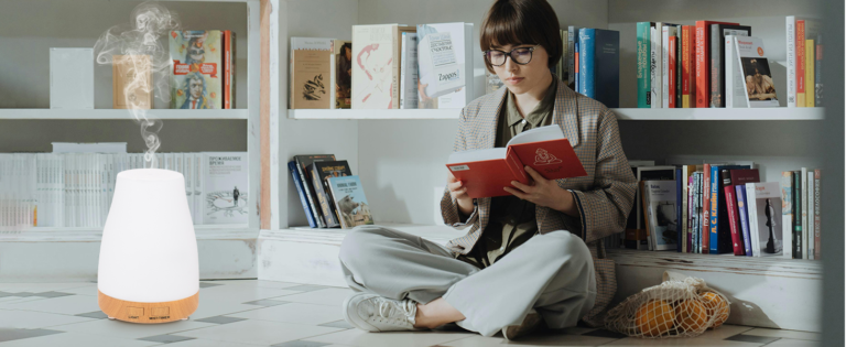 Check out this aromatherapy diffuser! It works as a humidifier too, has several LED light colors, runs quietly, and comes with timer settings plus a remote. It’s made of safe materials and shuts off by itself when water’s low. Perfect for home, office, or yoga!