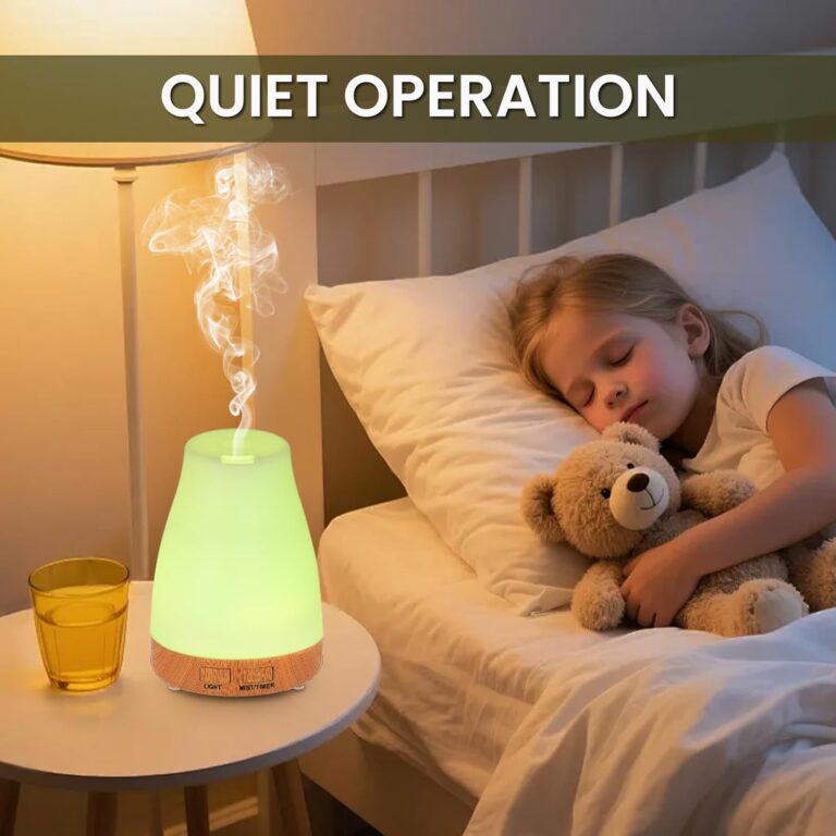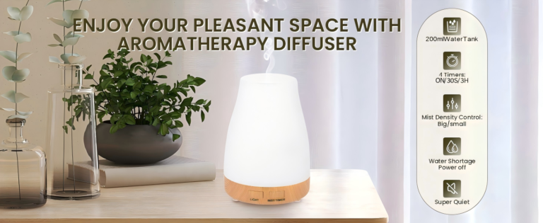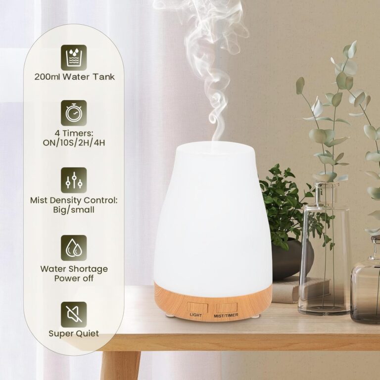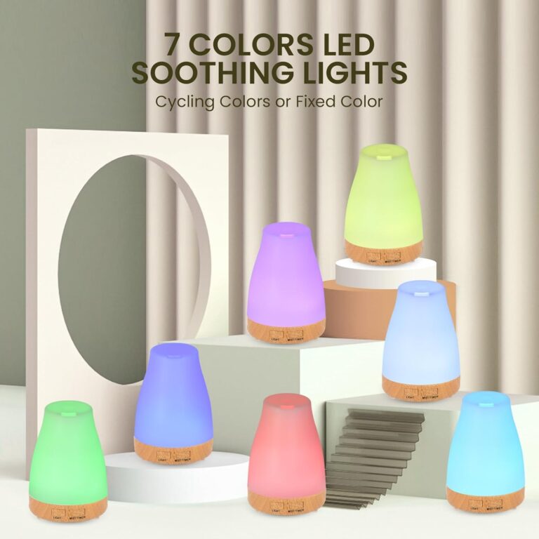 Check out this aromatherapy diffuser! It works as a humidifier too, has several LED light colors, runs quietly, and comes with timer settings plus a remote. It’s made of safe materials and shuts off by itself when water’s low. Perfect for home, office, or yoga!